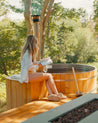 The Hybrid lets you have your cake and eat it too: wood-fired for the wild, flexible heating for everywhere else. Taking all that's beloved about the wood-burning hot tub and combining it with filtration and electric heating, the Hybrid's made for unbound hot tubbing - wherever you find your escape.