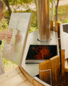 Heat by wood fire, electricity, or both. With unmatched flexibility to use the tub your way, the Hybrid can be heated by either source or both. Providing back-up during fire bans and the flexibility to heat the tub your way, year round at any property. Expedite the initial heat time or maintain the temperature automatically - just like conventional hot tubs - at the touch of a button, or virtually via an app.
